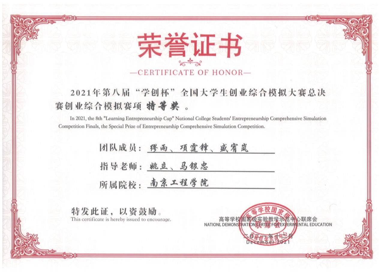 大赛分为省赛、决赛两个阶段,我校参赛队“饭团”于2021年5月通过校赛选拔,入围省赛,于7月获得省赛特等奖并入围全国总决赛,在全国总决赛中与来自武汉大学、华中科技大学、江苏大学等230余所院校同台竞技。总决赛由创业综合模拟和创业计划书两个赛事环节构成,我校参赛团队凭借出色的表现,荣获全国总决赛特等奖。