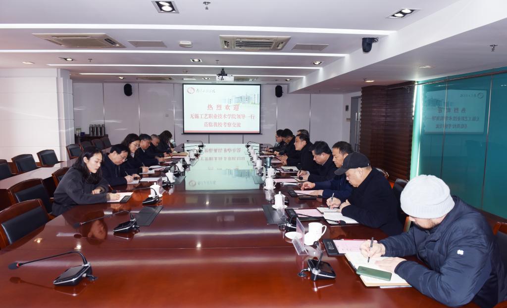 2月17日上午,无锡工艺职业技术学院党委书记魏萍、院长邵汉强一行到访我校,就人才培养、科学研究与社会服务等相关问题进行交流调研。我校党委副书记、院长史金飞,党委常委、副院长朱晓春,党委常委、副院长郑锋接待了来宾。党委办公室、校长办公室、发展与对外合作处、教务处、科技与产业处及艺术与设计学院等相关职能部门、教学单位负责人参加交流座谈会。