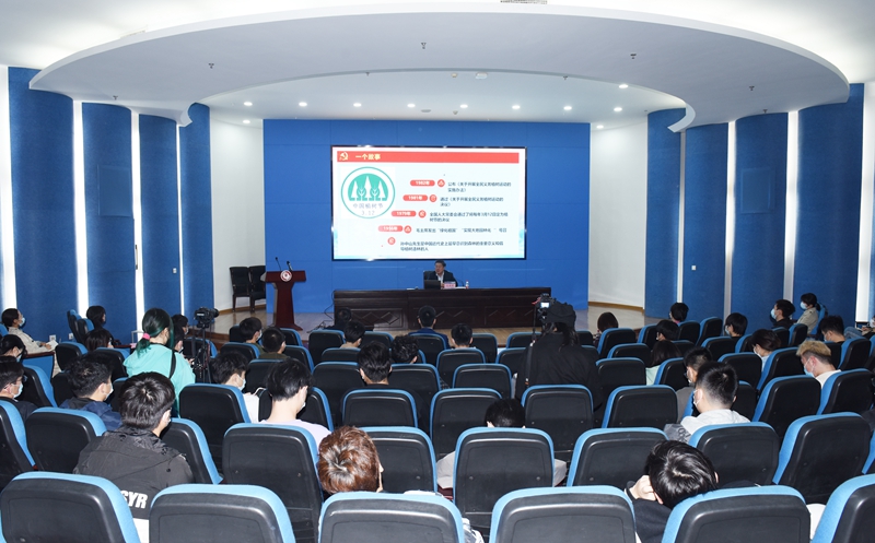 这是国际教育学院党总支主题党日活动的现场,也是该学院党员领导干部联系班级“三进三知”专题实践活动。软工(中外)201班第二班主任、校党委书记史国君为班级同学、学院全体党员带来了一堂生动的微党课。