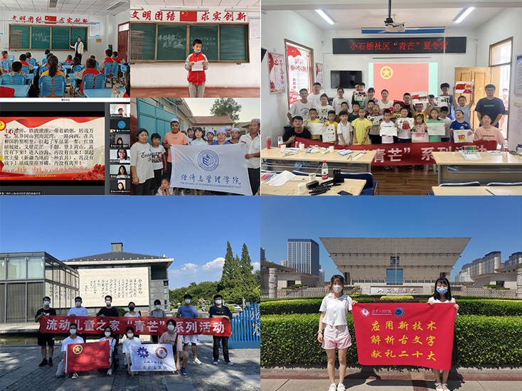 “民族团结一家亲”实践团队以信寄情,以文表意,体悟革命建设者的无私奉献与开拓进取。走访民族聚居地梨园社区,切实感受邻里和睦、相互包容的和谐氛围。“青芒”爱心支教团队前往小石桥社区,为当地儿童开设手工制作机械虫,手绘风筝,学算盘等课程,将传统文化与创新思维训练传递下去。“应用新技术,解析古文字,献礼二十大”团队以科技赋能助力文物传播,团队成员赴山西省博物院调研学习,立足专业背景,开发了《侯马盟书》智能识别平台,在弘扬民族优秀文化中彰显青年担当。建学红色分队走进如东盐垣社区学习并宣传非物质文化遗产草木扎染,以青年之力为延续历史文脉、推动文明交流互鉴、建设社会主义文化强国添砖加瓦。