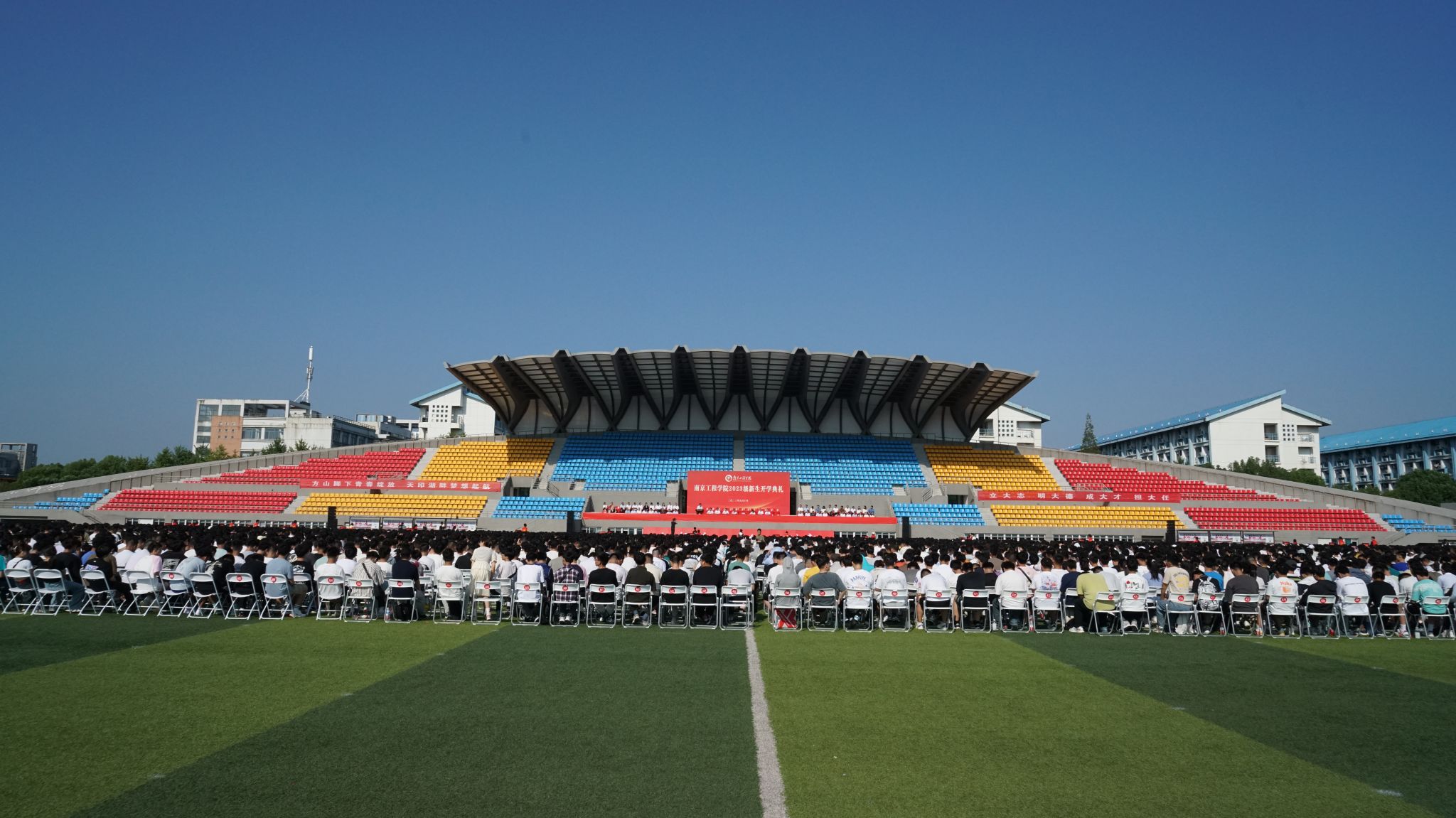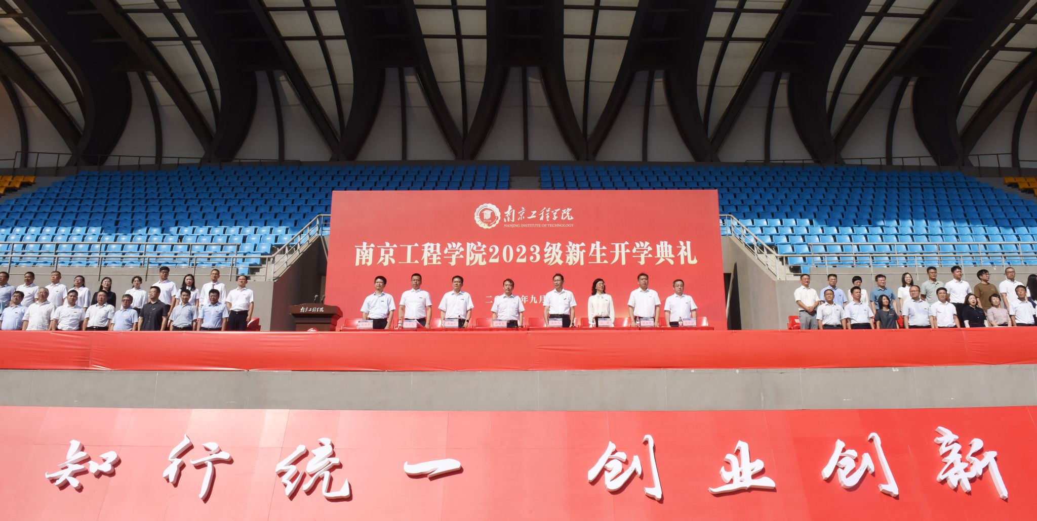 9月10日上午,秋意动人,天高云阔,凯发k8官网2023级新生开学典礼在体育公园举行。2023级的同学们承载着殷切期望、怀揣着青春梦想,从五湖四海而来,为校园注入了新的生机和活力。全体在校校领导,各学院、部门负责人,教师代表,校友代表,2023级本硕新生代表参加典礼。典礼由党委副书记濮励杰主持。