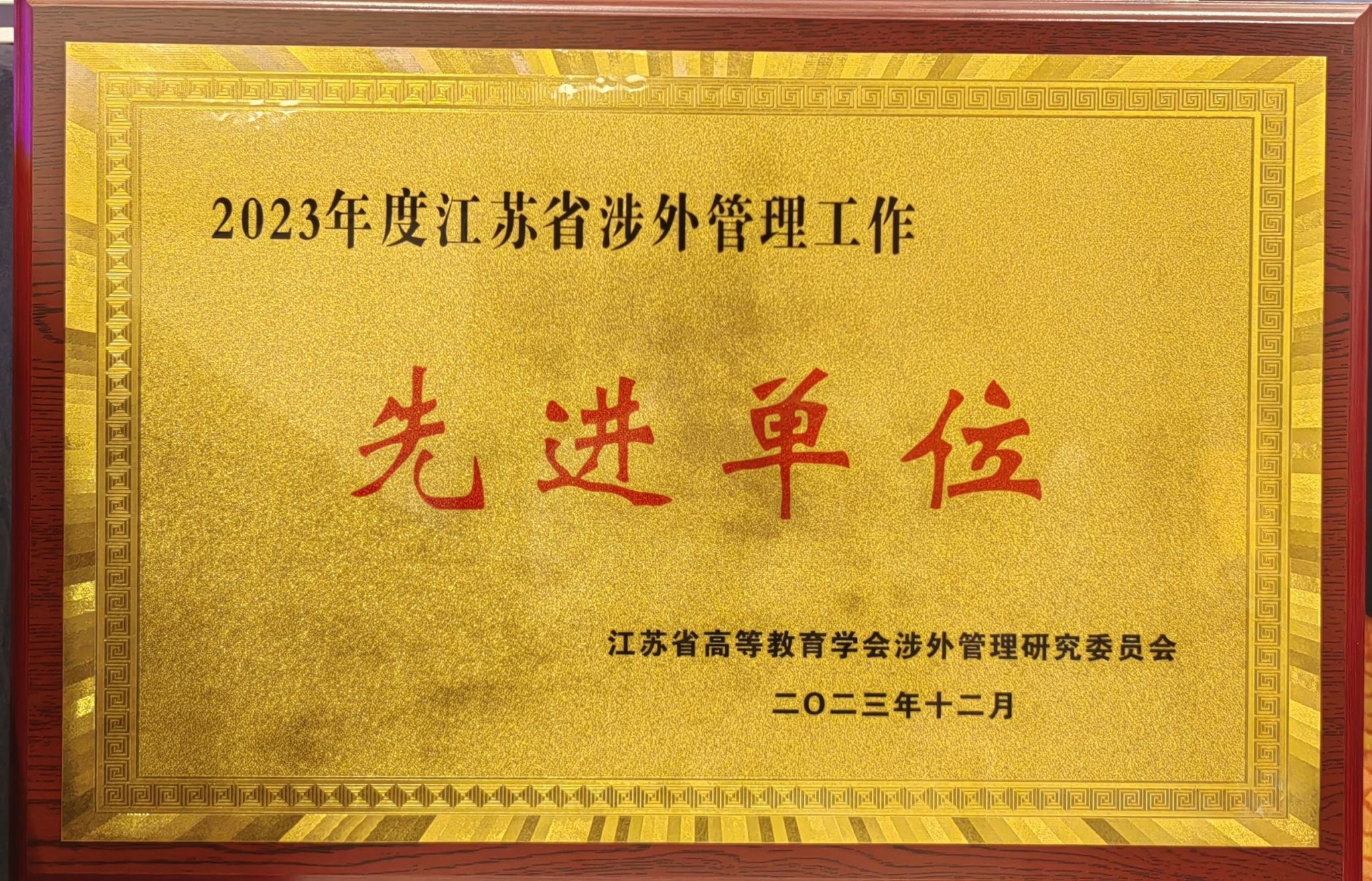 凯发荣获2023年度“江苏省涉外管理工作先进单位”称号