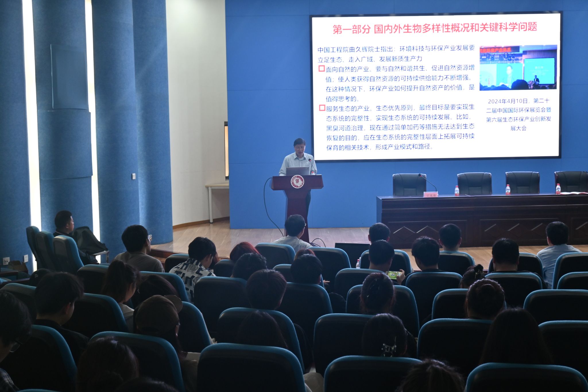 聘任仪式结束后,徐海根以“生物多样性观测网络和保护目标设计的理论与技术体系”为题,就当前国际社会重点关注的生物多样性及其团队在该领域开展的相关工作等前沿性热点问题与现场师生展开交流。