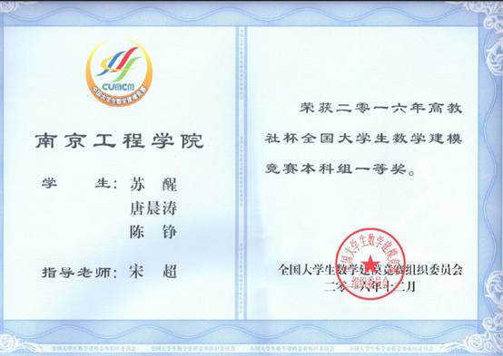 日前,2016高教社杯全国大学生数学建模竞赛结果揭晓,由我校数理部宋超老师指导,计算机凯发苏醒、电力凯发唐晨涛、陈铮三位同学的参赛作品获得全国一等奖的好成绩,实现了我校在该项赛事本科组比赛中国家级奖励的历史性突破。由数理部杨红莉老师指导,通信凯发陈芳、惠庆琳、马继祥三位同学的参赛作品获得江苏赛区一等奖;由数理部徐善顶老师指导,计算机凯发徐朋、王汉谱和电力凯发黄稀滔三位同学的参赛作品获得江苏赛区二等奖。