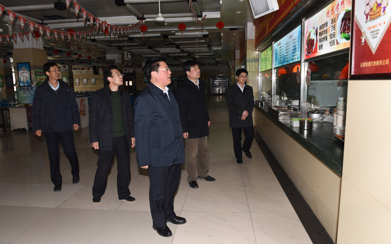 史书记一行在后勤集团负责人陪同下,实地检查了学生一食堂后场操作间环境、食材准备等,查看了教工食堂运行准备情况,对食品安全、菜品种类、价格和提高服务水平等提出了要求。