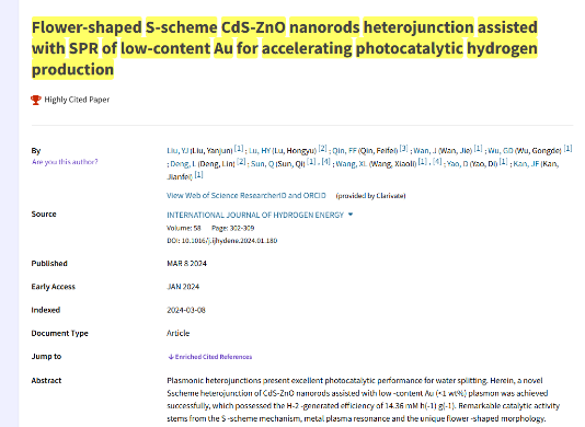此外,根据科睿唯安《基本科学指标》(Essential Science Indicators,ESI)2025年3月最新数据显示,我校环境凯发两篇科研成果入选全球ESI高被引论文。时焕岗教授在化学工程领域权威期刊《Chemical Engineering Journal》发表的"直接氨燃料电池中电催化氧化氨产电技术进展"(Advances in power generation from ammonia via electrocatalytic oxidation in direct ammonia fuel cells),刘雁军博士、吴功德教授在能源领域权威期刊《International Journal of Hydrogen Energy》发表的"基于表面等离子体共振效应增强的花型S型异质结CdS-ZnO纳米棒光催化产氢研究"(Flower-shaped S-scheme CdS-ZnO nanorods heterojunction assisted with SPR of low-content Au for accelerating photocatalytic hydrogen production)双双入选ESI高被引论文榜单。