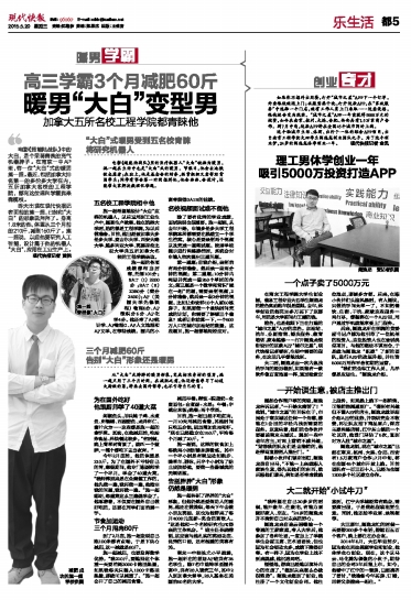 2014年5月,大四毕业前夕,因为实在无法兼顾学业和创业,他休学全心创业。现在,这个以马云、马化腾为偶像的小伙子,期待自己的公司3年后能上市。如今,他看中了江宁的一套房,已经凑齐了首付,“我准备今年买房、订婚,再将父亲接来一起住。”
